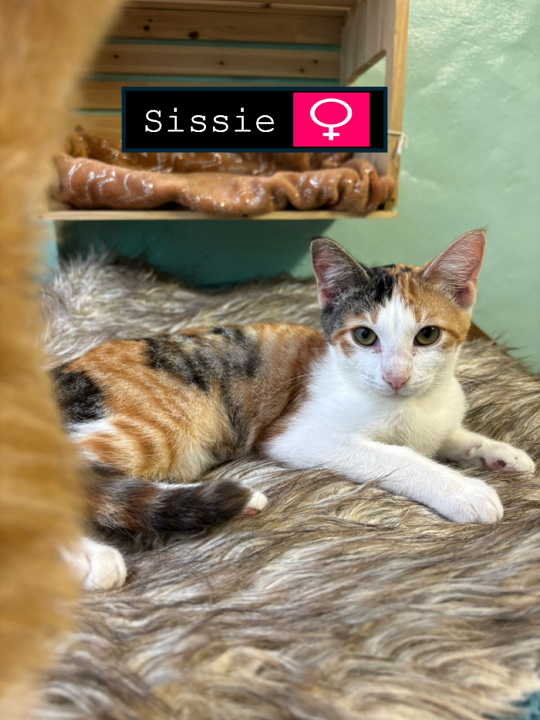Was a feral kitten and has improved significantly. Is so beautiful and fluffy. Will be worth the patience needed to gain her trust.